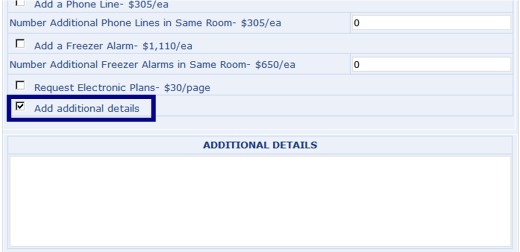 | At the end of the list of Fixed Price Renovation Options, you can put a check in the "Add additional details" checkbox and a textbox will appear allowing you to type in notes.